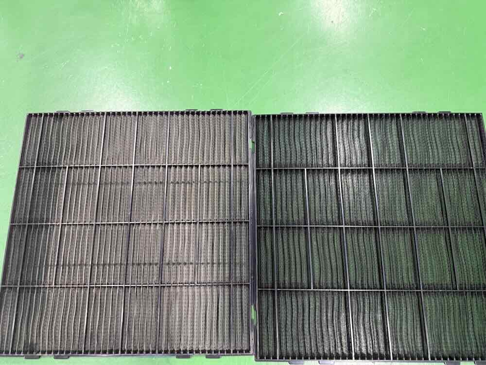 交換作業ですので、3時間半ほどで終了です。現地で取り外し、現地で洗浄し、現地で取り付けるとおそらく1日では終わらないと思います。弊社は、すべてお客様専用のフィルターをご用意して交換しております。
